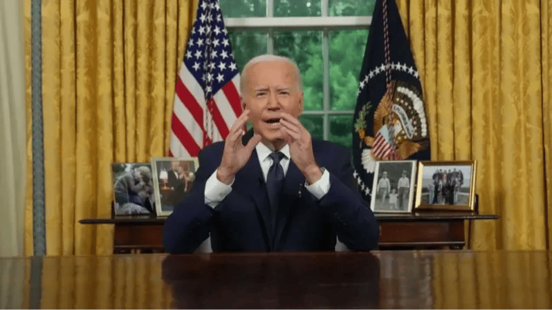 Biden Oval Ofis'ten yaptığı ulusa sesleniş konuşması 10 dakikada kısa sürdü.