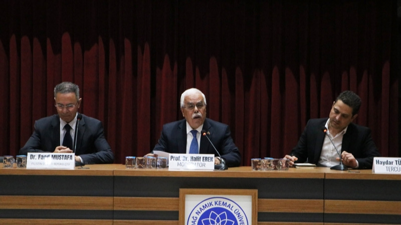 Filistin'in Ankara Büyükelçisi Faed Mustafa, Tekirdağ Namık Kemal Üniversitesince Rektörlük Konferans Salonu'nda gerçekleştirilen, "Filistin Meselesi ve Günümüzde Gazze'de Yaşananlar" adlı konferansta, İsrail'in Filistin'e saldırılarının yıllardan bu yana devam ettiğini söyledi.