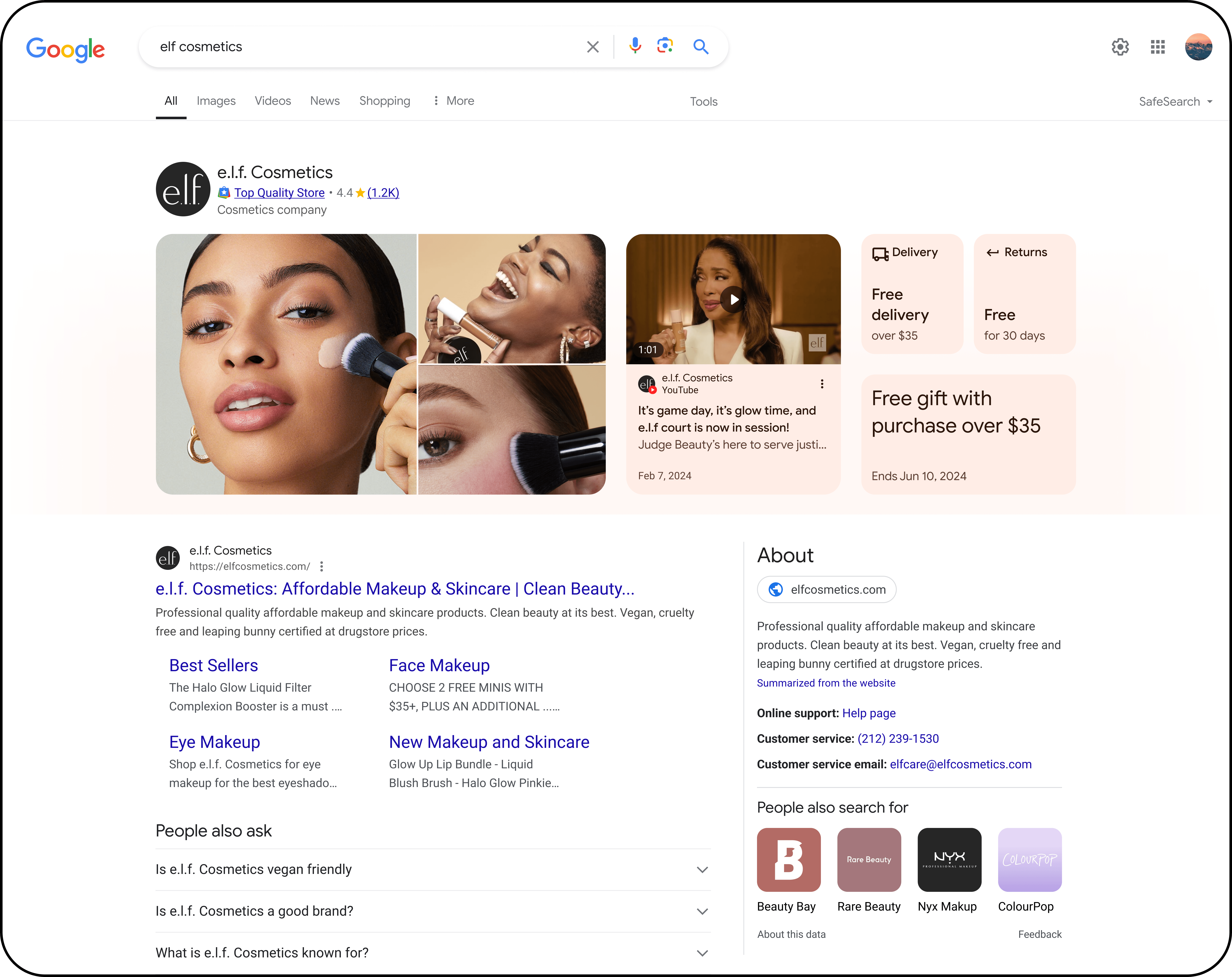 Google Arama sonuçlarında yer alması planlanan yeni marka profili, marka özelinde arama sorgularına daha zengin sonuçlar sunuyor. Bu yeni profil, markanın öne çıkan yönlerini vurguluyor. Profilin ön kısmında ve merkezinde videolar, müşteri değerlendirmeleri, güncel fiyatlar ve teslimat ilkeleri bulunuyor. Profil, önümüzdeki aylarda küresel çapta aşamalı olarak kullanıcılara açılacak.