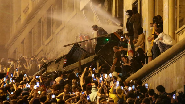 Gürcistan'da "yabancı etkinin şeffaflığı" konulu yasa tasarısını protesto eden göstericiler parlamento binasını kuşattı.