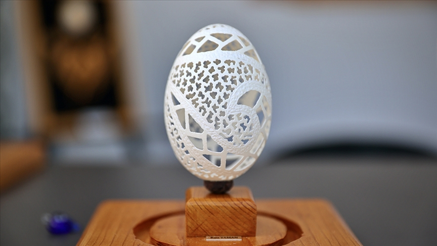 Yumurta kabuklarına "sanatın en kırılgan halini" işliyor: Kültür ve Turizm Bakanlığı "somut olmayan kültürel miras taşıyıcısı" 64 yaşındaki Rıza Yaman, yumurta kabuğundan sanat eserleri çıkartıyor.