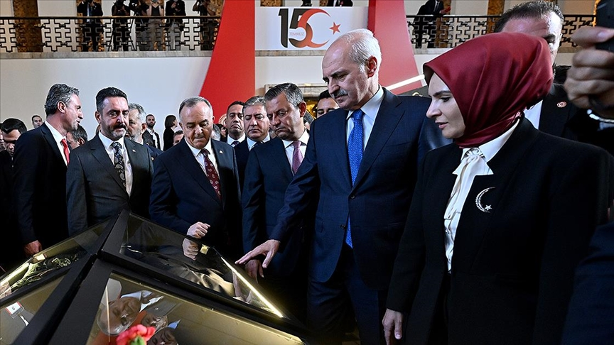 TBMM'de "Milletin Zaferi Elimin Emeği Gözümün Nuru" sergisi açıldı: TBMM Başkanı Numan Kurtulmuş, şehit anneleri, eşleri, gazi ve gazi eşlerinin yaptığı eserler ile şehitlerin eşyalarından oluşan "Milletin Zaferi Elimin Emeği Gözümün Nuru" sergisinin açılışını yaptı.