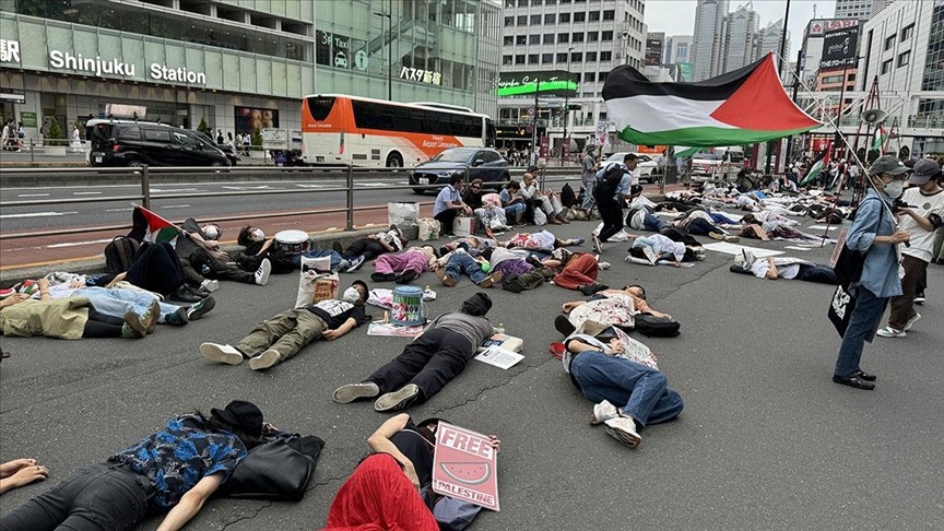 Tokyo Filistin'e destek gösterisi düzenlendi: Japonya'nın başkenti Tokyo'nun işlek noktalarından Şincuku'da Filistin'e destek amacıyla toplanan onlarca kişi, İsrail'in Gazze'ye yönelik saldırılarına tepki gösterdi.