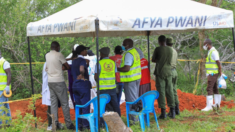 - Arkası: Good News International Kilisesi Papazı Paul Mackenzie Nthenge'nin, kilisesindeki insanlara aç kalarak Hz. İsa'ya kavuşmalarını vadettiği belirtilmişti.