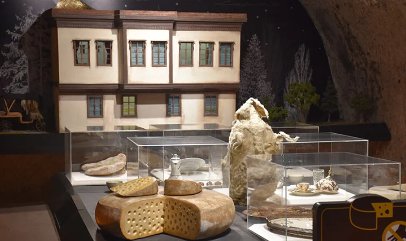 - Ahır, içi süt dolu güğümler, yaylalardaki yaşam ve peynir yapımı ile imalatının serüveninin anlatıldığı bölümlerin bulunduğu müze, 1100 metrekare dolaşılabilir alanıyla "dünyanın en büyük peynir müzesi" olma özelliği taşıyor.