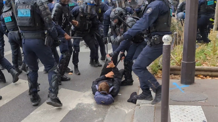 Paris'te maaş artışı talebiyle yürüyen protestoculara polisten sert müdahale: Sendikaların çağrısıyla öğretmenler dahil farklı meslek grupları ülke genelinde maaş artışı ve kadın-erkek eşitliği talebiyle greve gitti.