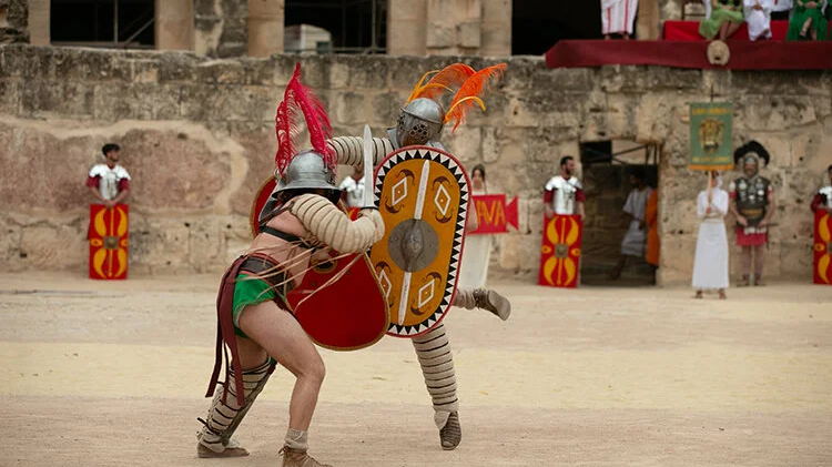 - Tunus Kültür Bakanı Muhammed Muaz Bilheşine'nin katılımıyla El-Cem Kolezyum Amfi Tiyatrosu'nda düzenlenen festivalde, 3. yüzyıla ait Roma kıyafetlerini giyen gladyatörler gösteri yaptı.