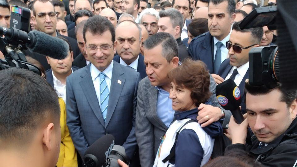 CHP Genel Başkanı Özgür Özel ve İBB Başkanı Ekrem İmamoğlu, Saraçhane'de polislerin bulunduğu alana yürümek üzere bir araya geldi.