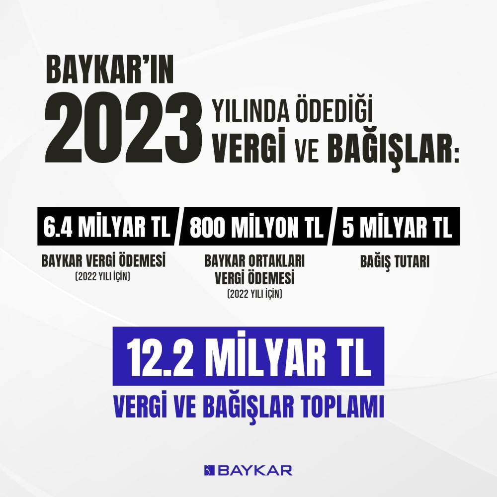 Baykar 2023 yılında ülkemize vergi ve bağış yoluyla toplamda 12.2 milyar TL doğrudan katkı sağlamıştır.