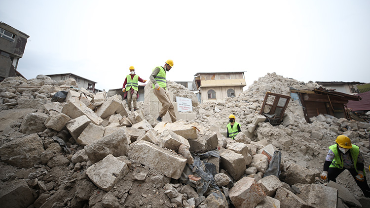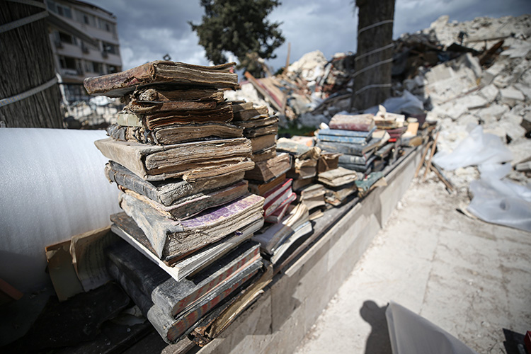 Moloz yığınına dönüşen simge yapılarda titizlikle çalışan bilim insanları ve öğrenciler, enkaz altında kalmış ikona, kitabe, dini kitaplar ve diğer objeleri kurtarmak için gayret gösteriyor.