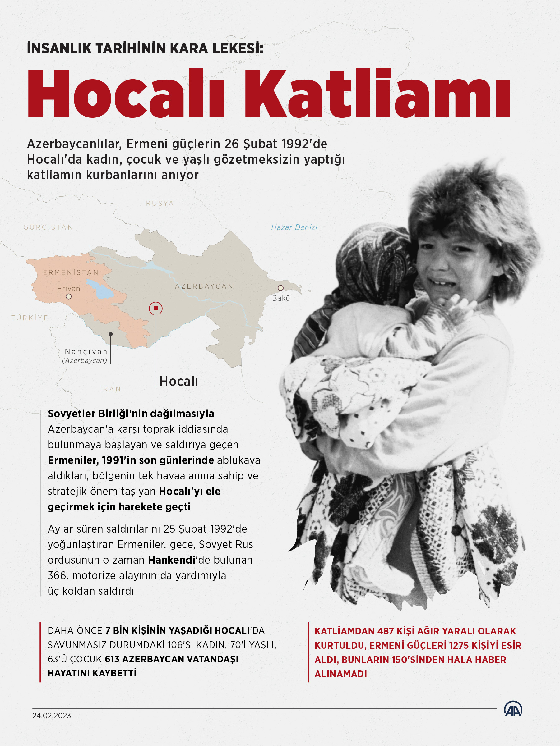 Aradan geçen 31 yıla rağmen acısı tüm Azerbaycanlıların kalbinde tazeliğini koruyan Hocalı Katliamı, insanlık tarihine kara bir leke olarak yazıldı.