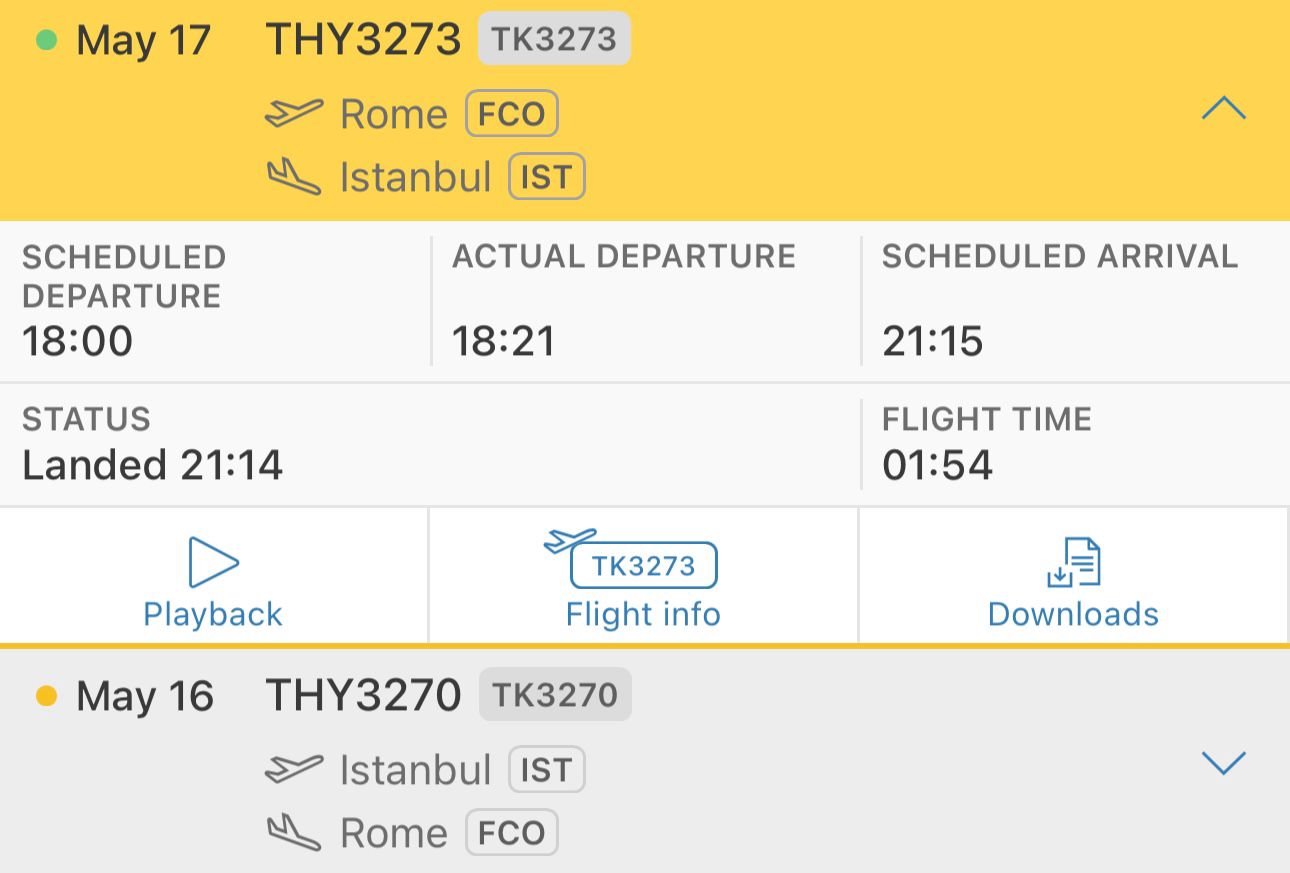 Kafilenin THY’den kiralanan Çekmeköy isimli Boeing-737 model uçakla 16 Mayıs günü sabah saatlerinde uçtukları Roma’dan 17 Mayıs günü akşam saatlerinde İstanbul’a döndükleri öğrenildi.