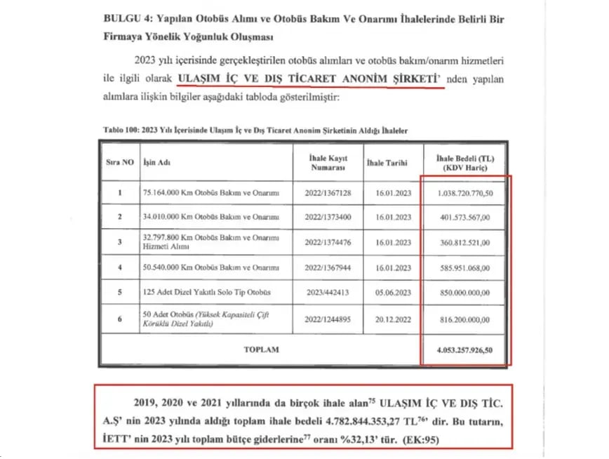 2019-2023 yılları arasında sadece İBB’den 4.7 milyar TL’lik ihale alan Ulaşım İç ve Dış Ticaret A.Ş.: