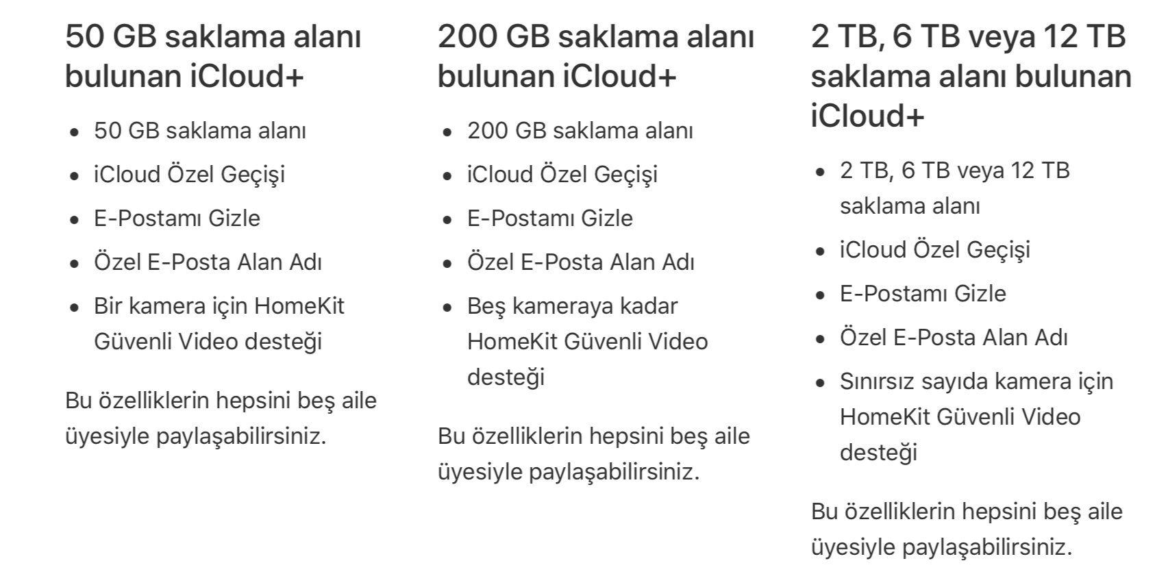 Normalde Apple iCloud için en düşük seçenek olan 5GB ücretsiz, 50GB kapasite ise 12.99TL aylık ücrete tabiiydi. En üst seviye ise 2TB olarak 129.99TL aylık ücret gerektiriyordu.