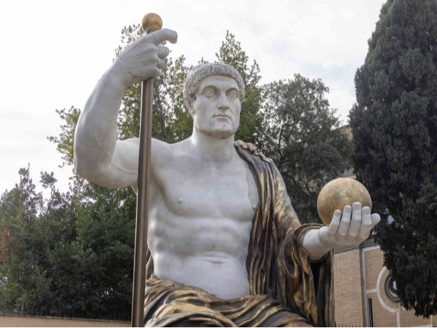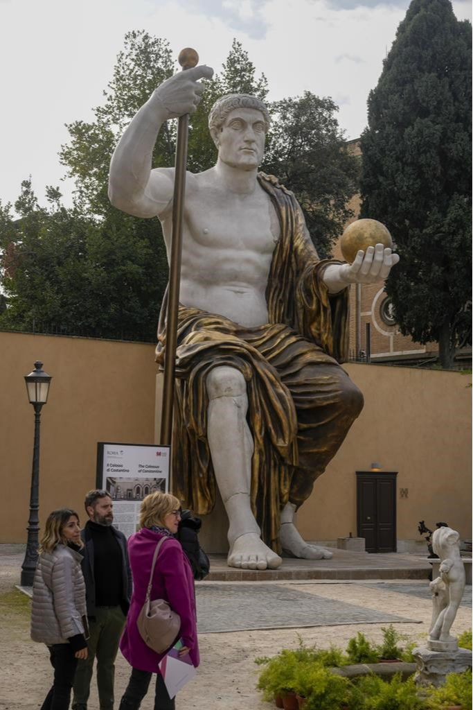 Bir zamanlar Roma Forumu'ndaki Maxentius Bazilikası'nda yer alan devasa Konstantin heykelinin tam boyutlu rekonstrüksiyonu, Capitoline Tepesi'ndeki Palazzo dei Conservatori'nin hemen arkasında yer alan Villa Caffarelli Bahçesi'nde sergilenmeye başlandı.