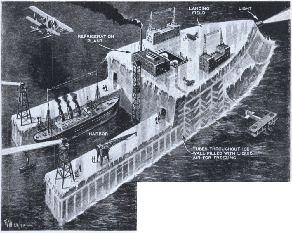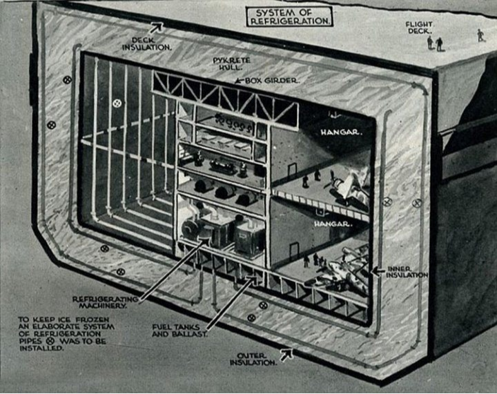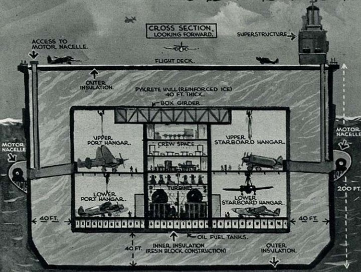 Bir İngiliz bilim adamı olan Geoffrey Pyke, Başkan Lord Mountbatten'e danışmanlık yaptığı Kombine Operasyonlar Karargahı'nda, fantastik bir fikir ortaya attı: buzdan bir uçak gemisi yapın.