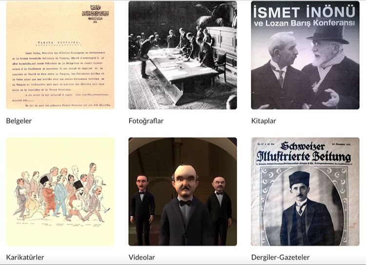 Sitede, İsmet Paşa ve Lozan heyeti ile Lozan Antlaşması'na imza atıldığı ana ait fotoğrafların da yer aldığı tarihi belgeler arasında, Mevhibe İnönü'nün Lozan'a gitmeden önce pasaportu için çektirdiği vesikalığı, konferansa giden ilk heyetin toplu pozu, İsmet Paşa'nın konferansta kullandığı kartviziti, antlaşmayı imzaladığı kalem ve mührü, Lozan dönüşünde, Ankara Garı'nda Atatürk ve Latife hanım tarafından karşılanma anı gibi ayrıntılar da yer alıyor.