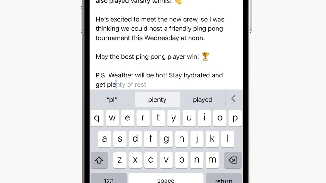 "Otomatik Düzeltme özelliği, transformer dil modeli ile yapılan kapsamlı bir güncelleme sayesinde sözcük tahmininde büyük bir gelişme sağlıyor. Transformer dil modeli, aygıt içi yapay öğrenme teknolojilerinden faydalanan son teknoloji bir dil modeli. Ayrıca, yenilenen tasarımıyla Otomatik Düzeltme, daha iyi yazma desteği sunuyor ve cümle düzeyindeki otomatik düzeltmeler daha fazla dil bilgisi hatasını düzeltebiliyor.