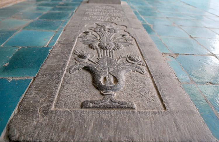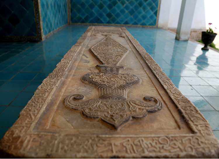 Melikşah'ın olduğu belirtilen mezar taşında burada Sultan Melikşah'ın yattığı, mezar taşının etrafında ise Ayetelkursi, Zümer suresinin 53'üncü, Ali İmran suresinin 18, 19 ve 26'ncı, Bakara suresinin 137'nci ayetleri ile İhlas suresinin tamamı işlenmiş durumda. Benzer ayetleri Nizamülmülk'ün mezarında da görmek mümkün.
