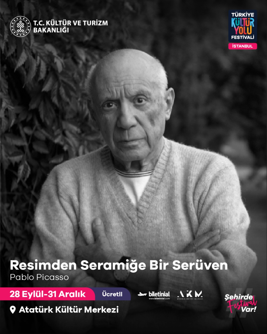 Dünyanın en ünlü ressamlarından Pablo Picasso’nun eserleri İstanbul Kültür Festivali kapsamında 28 Eylül - 31 Aralık tarihleri arasında Atatürk Kültür Merkezi’nde sergilenecek. Sergi, Pablo Picasso’nun gravürleri, çizimleri, posterleri, litografileri ve fotoğraflarından oluşan, tamamı orijinal ve mirasçıları tarafından onaylanmış 170 parçayı bir araya getiriyor.