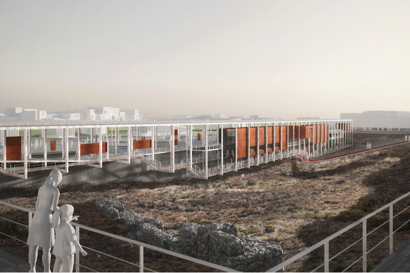 Meydan ve Kazı çukurunun ara kesitine “asılan” ve Ziyaretçi Merkezini oluşturan iskele strüktür bölgenin geçmişi ve mevcut hali arasında bir gezi rotası tariflemektedir.