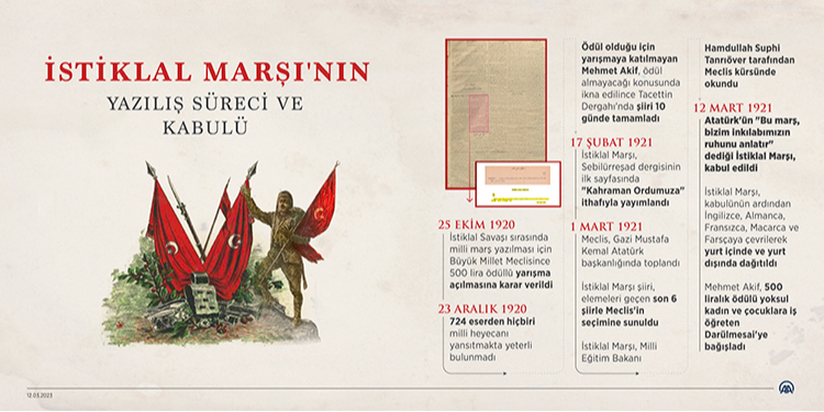 Ankara'daki Büyük Millet Meclisi, kuruluşundan bir yıl sonra duyulan ihtiyaç neticesinde "Milli Marş" yazımı için 500 lira ödüllü bir yarışma düzenledi.