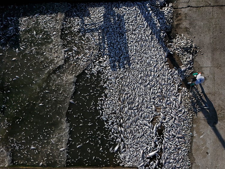 Geçici bir tedbir olarak yürütülen çalışma sonrası yüzeye çıkan ölü balıklar ise ekipler tarafından temizleniyor.