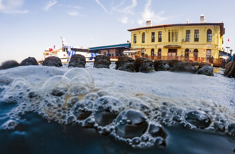 Pasaport ve Konak iskeleleri arasındaki dalgakıranın iç bölümünde yoğunlaşan kirlilik nedeniyle son 3 günde çok sayıda balığın öldüğü gözlendi.