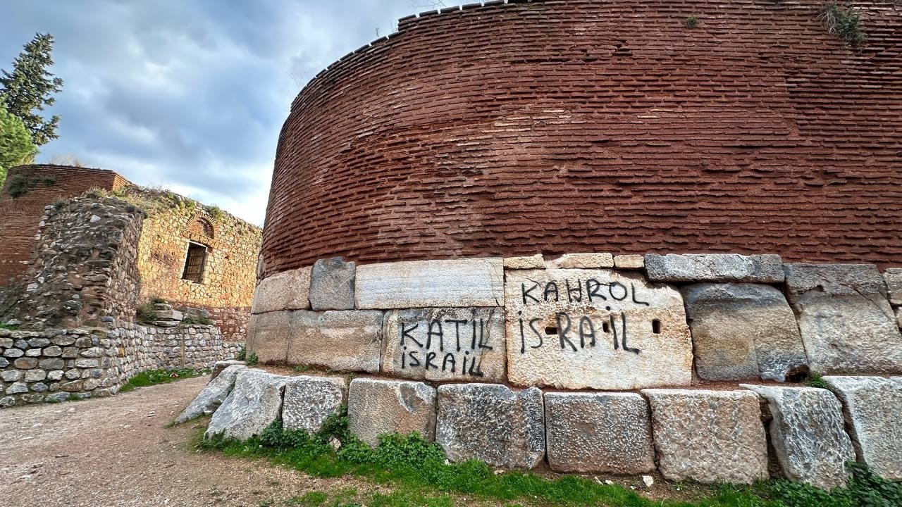 İznik'te 2 bin yıllık surlara "Katil İsrail" yazdılar