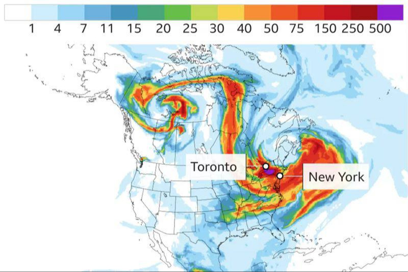 ABD'nin kuzey doğu eyaletleri, Kanada'da günlerdir devam eden orman yangınlarından oluşan dumanların etkisi altında kaldı. ABD hükümetine bağlı AirNow sitesi, New York şehri ve civarında hava kalitesi seviyesini turuncu renkten kırmızı renge çıkardı.