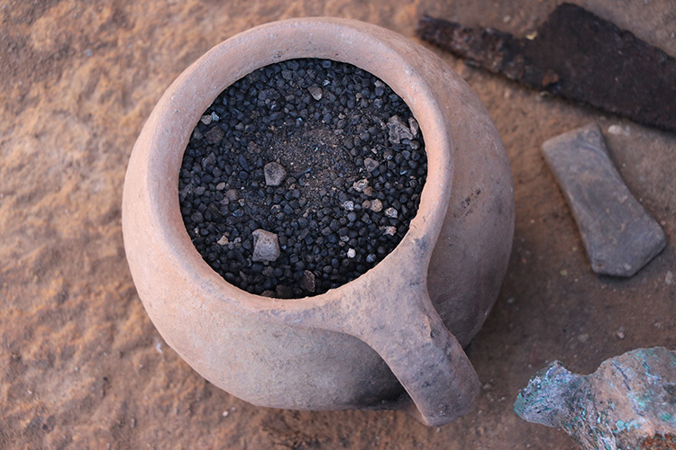 "Mutfağın ocak bölümü ortaya çıkarıldı. Hemen yanında ise içerisinde kaplar ve bu kapların 2 tanesinin içinde de tohum günümüze ulaştı. Uzmanlarıyla yapmış olduğumuz görüşmeler neticesinde tohumların cinslerini tespit ettik. Tohumların biri buğday, diğeri bezelye türü fiğ dediğimiz tohum. Diğeri ise yoğurt otu dediğimiz ot."