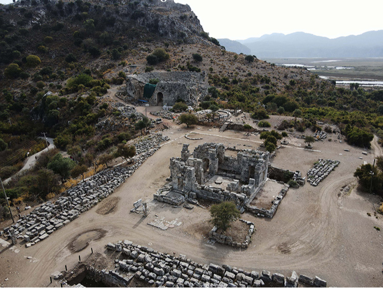 Tarihi alandaki 2 bin 400 yıllık kaya mezarları, 5 bin kişilik tiyatro, bazilika, hamam, agora ve kutsal alanlar ile 1300 yıllık mozaikler ziyaretçilerin ilgisini çekiyor.