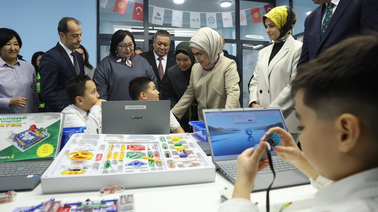 Azerbaycan ve Kuzey Kıbrıs Türk Cumhuriyeti'nden sonra Bişkek'te kurulan bilim merkezinin açılış kurdelesini kesen Emine Erdoğan "hayırlı olsun" dileklerini belirtti. Bilim Bişkek merkezini gezerek çocuklarla sohbet eden Emine Erdoğan ayrıca açılış sonrasında konuyla ilgili görüşlerini de paylaştı.