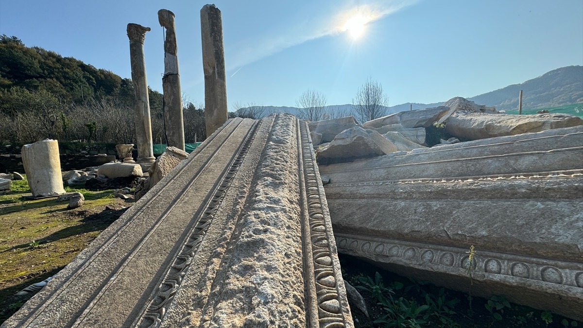 Yapının restorasyon çalışmalarının sürdüğünü belirten Çam, "Üç sütunun ayağa kaldırılması çalışmalarını gerçekleştirdik. Bu uygulama sırasında yapının doğu kısmındaki 3 kaide baz alındı ve buradaki mimari parçalar sergileme alanına yerleştirildi. Bu sayede yapı, ayağa kaldırıldığında nasıl görüneceğiyle ilgili bize görsel olarak da fikir vermeye başladı. Ayağa kaldırılan sütunlar sayesinde yapının anıtsallığı da ortaya çıktı. Önümüzdeki yıl da alan ve yapının tamamen ortaya çıkarılmasıyla restorasyon projesi devam edecek." diye konuştu.