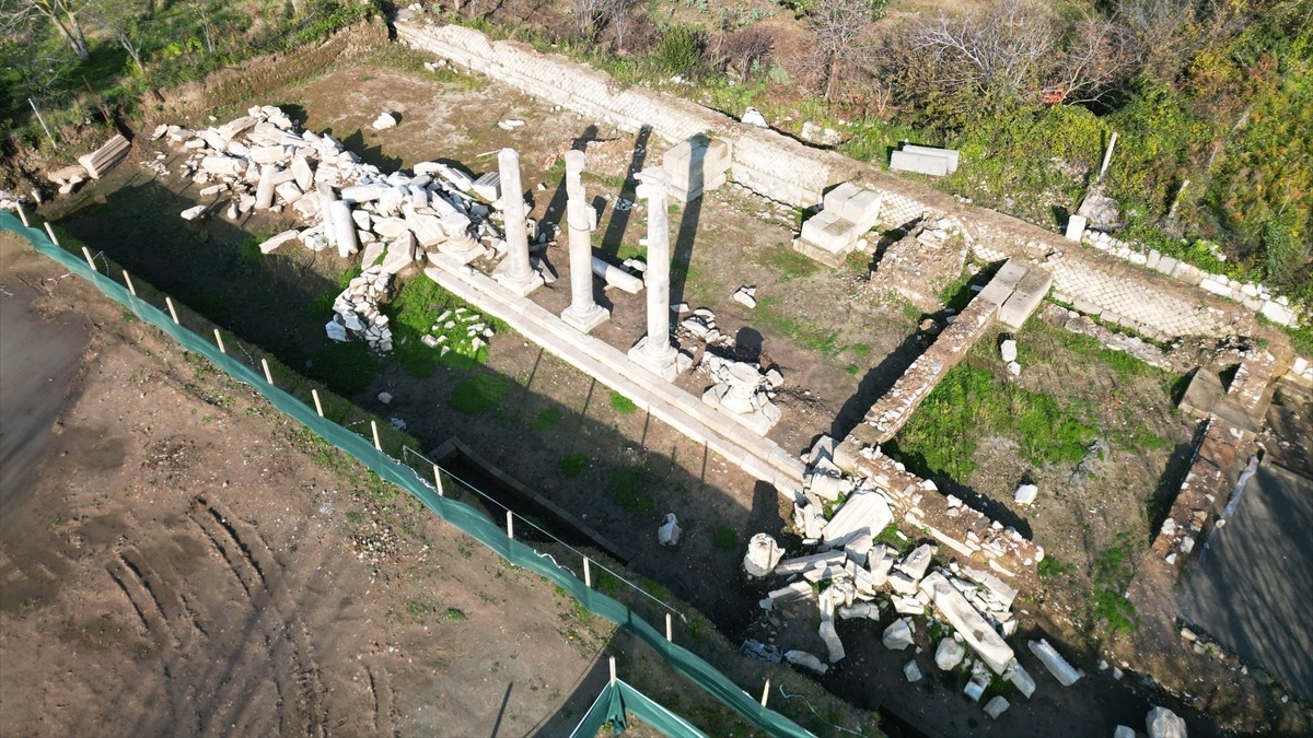 BARÜ Arkeoloji Uygulama ve Araştırma Merkezi Müdürü Prof. Dr. Fatma Bağdatlı Çam başkanlığında 2 bin 850 metrekare alanda yapılan çalışmalarda, doğal afetler sonucu yıkılan Roma dönemine ait, boyu 9 metreyi bulan mermer sütunlarıyla dikkati çeken stoa yapı bulunduğu belirlendi.