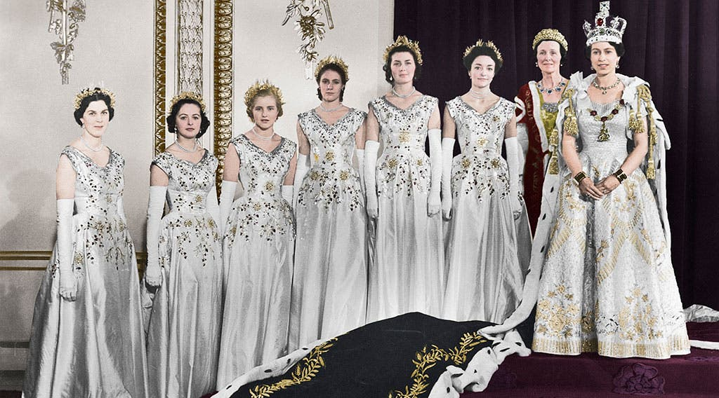 2. Kraliçe II. Elizabeth Taç Giyme Töreni Elbisesi ve Nedimeleri ile