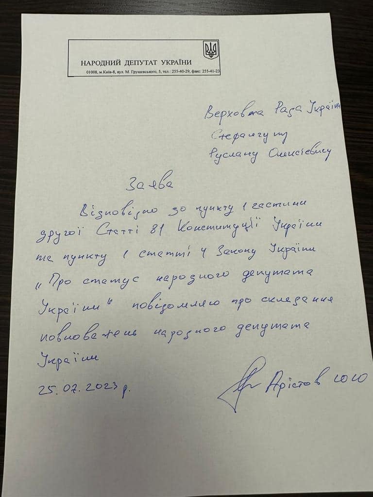 Gelişmelerin ardından Aristov, istifasını sundu.