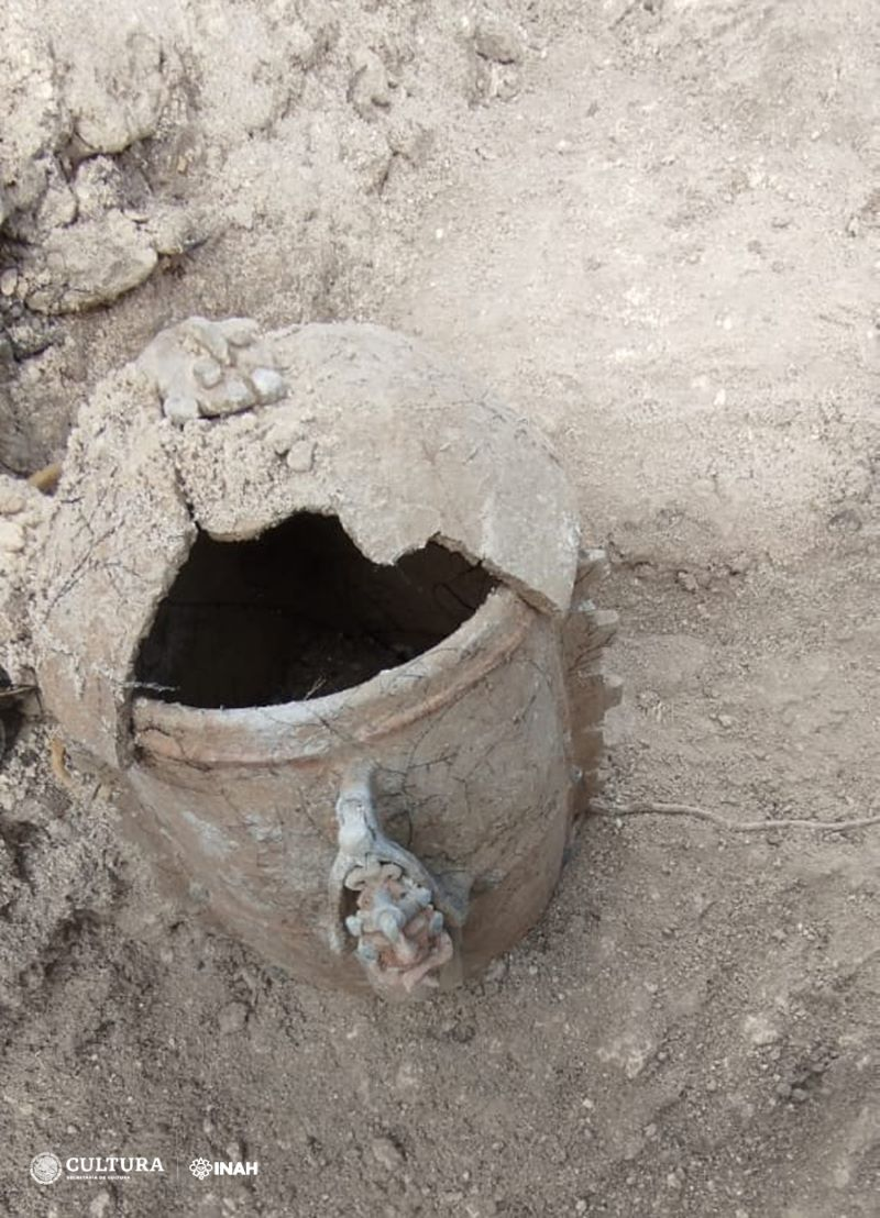 Ulusal Antropoloji ve Tarih Enstitüsü'nden (INAH) arkeologlar, Maya mısır tanrısını tasvir eden Paaktzatz tarzı bir urne kabı ortaya çıkardı.