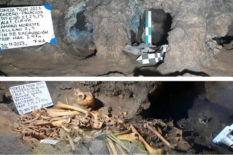 Meksika’daki arkeologlar, yeni bir yol yapımı öncesi Tulum, Quintana Roo’daki arkeolojik komplekste bir Maya mezar alanı keşfetti.