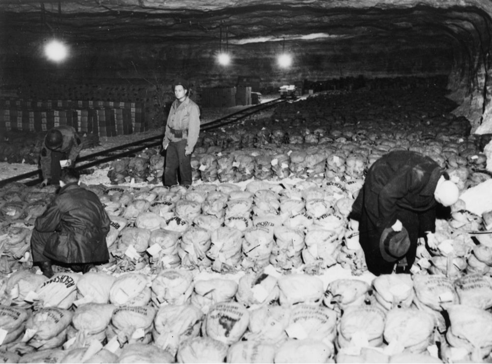 Amerika Birleşik Devletleri'nin ilerleyen Üçüncü Ordusu, 2. Dünya Savaşı'nın sonlarına doğru ele geçirilen Alman kasabası Merkers-Kieselbach'a yürüdüğünde, iki kadından, Merkers yakınlarındaki kullanılmayan bir tuz madeninin Almanlar tarafından depolanan altınlarla birlikte depolandığına dair bir ihbar aldılar.