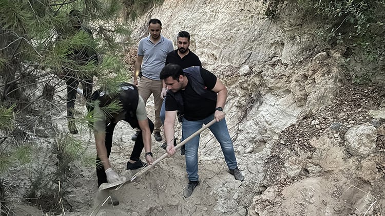 Alanda iş makinesiyle yapılan kazıda Orhan Osman G'nin kemiklerine ulaşıldı.
