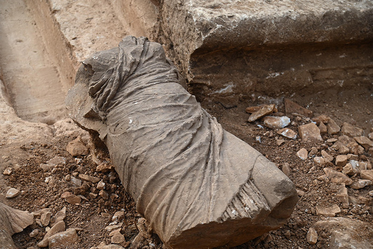 Koruma ve restorasyon işlemlerinin de yapıldığı antik kentte, "liman hamamı" olarak adlandırılan bölgedeki kazıda Roma Dönemi'ne ait olduğu değerlendirilen kadın heykeli bulundu.