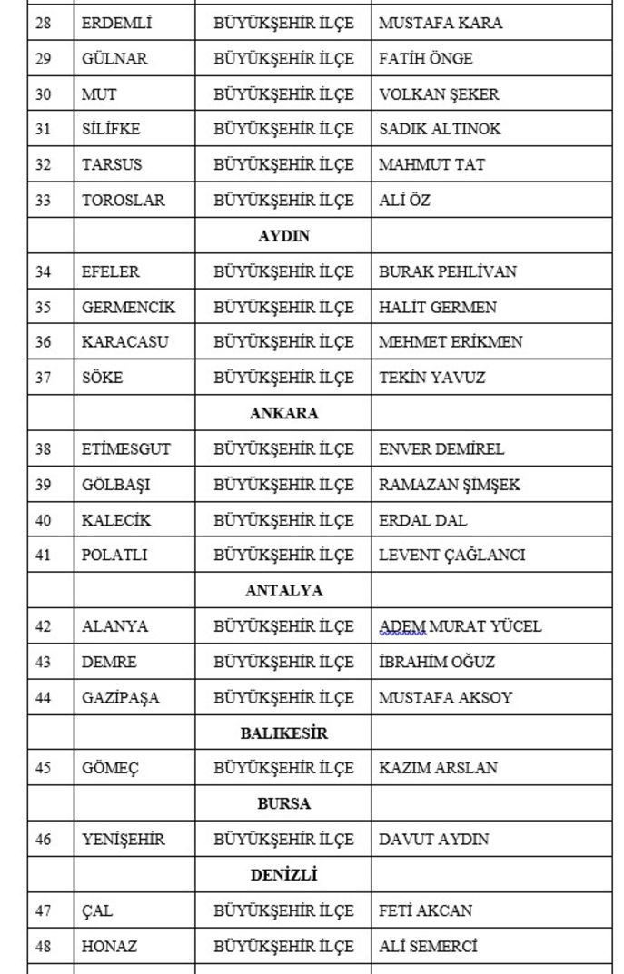 MHP, 31 Mart seçimlerinde adaylıkları kesinleşen 2 büyükşehir, 12 il ve 41 ilçe belediye başkan adayı olmak üzere toplam 55 adayın isimlerini açıkladı.