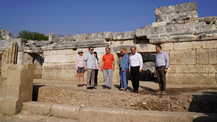 Akropoldeki kaya mezarları, meclis binası, stadyum alanında kazı çalışmalarının yürütüldüğünü anlatan Korkut, kentin doğu sınırını çizen antik tiyatronun sahne binasını sağlamlaştırdıklarını belirtti.
