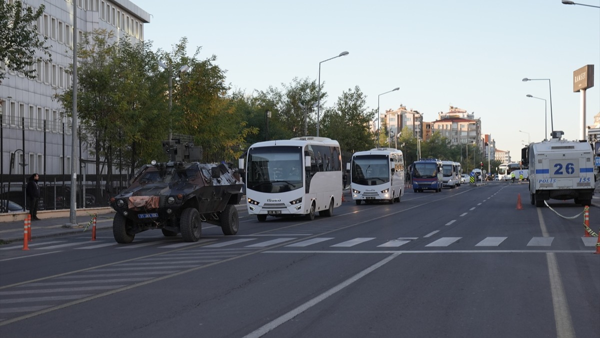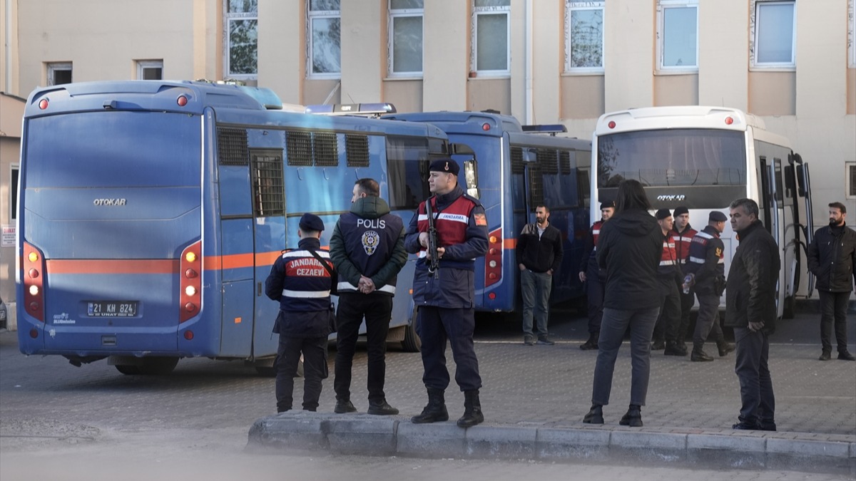 8. Ağır Ceza Mahkemesi'nde dün görülmeye başlayan davanın 2. gününde tutuklu sanıklar, Diyarbakır Ceza İnfaz Kurumları Kampüsü'nden cezaevi nakil araçlarıyla geniş güvenlik önlemi alınarak Diyarbakır Adliyesi'ne getirildi. Duruşmaya katılanlar, adliye önü ve içerisinde 2 ayrı noktada yapılan aramadan sonra duruşma salonuna alındı.