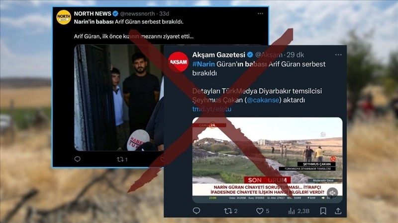 X'te (eski adıyla Twitter) Narin Güran'ın babasının serbest bırakıldığını iddia edildi. Söz konusu iddia kısa süre içerisinde hızla yayılarak gündem oldu.