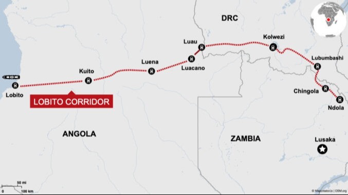 Orta Afrika'da yer alan Lobito Koridoru, Zambiya ve Demokratik Kongo Cumhuriyeti'ndeki kritik mineral madenlerini Angola'daki Lobito limanına taşıııcak olan bir demiryolu hattı inşa etmeyi hedefliyor.