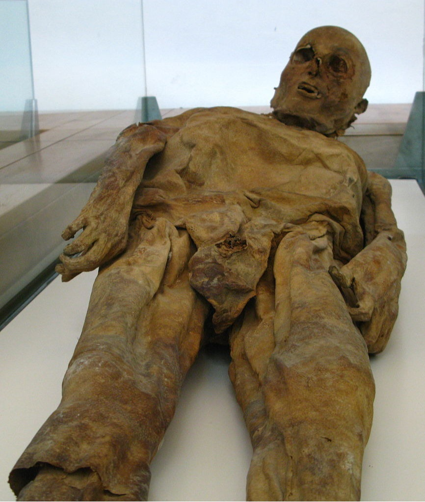 Ciltleri sarı-kahverengiye dönmüş ve bronzlaşmış deri gibi görünüyor. Kaslar, kalp de dahil olmak üzere ince zarlar haline gelmişken, böbrekler ve pankreas gibi iç organlar kaybolmuş. Beyin hacminin üçte biri kalmıştı.