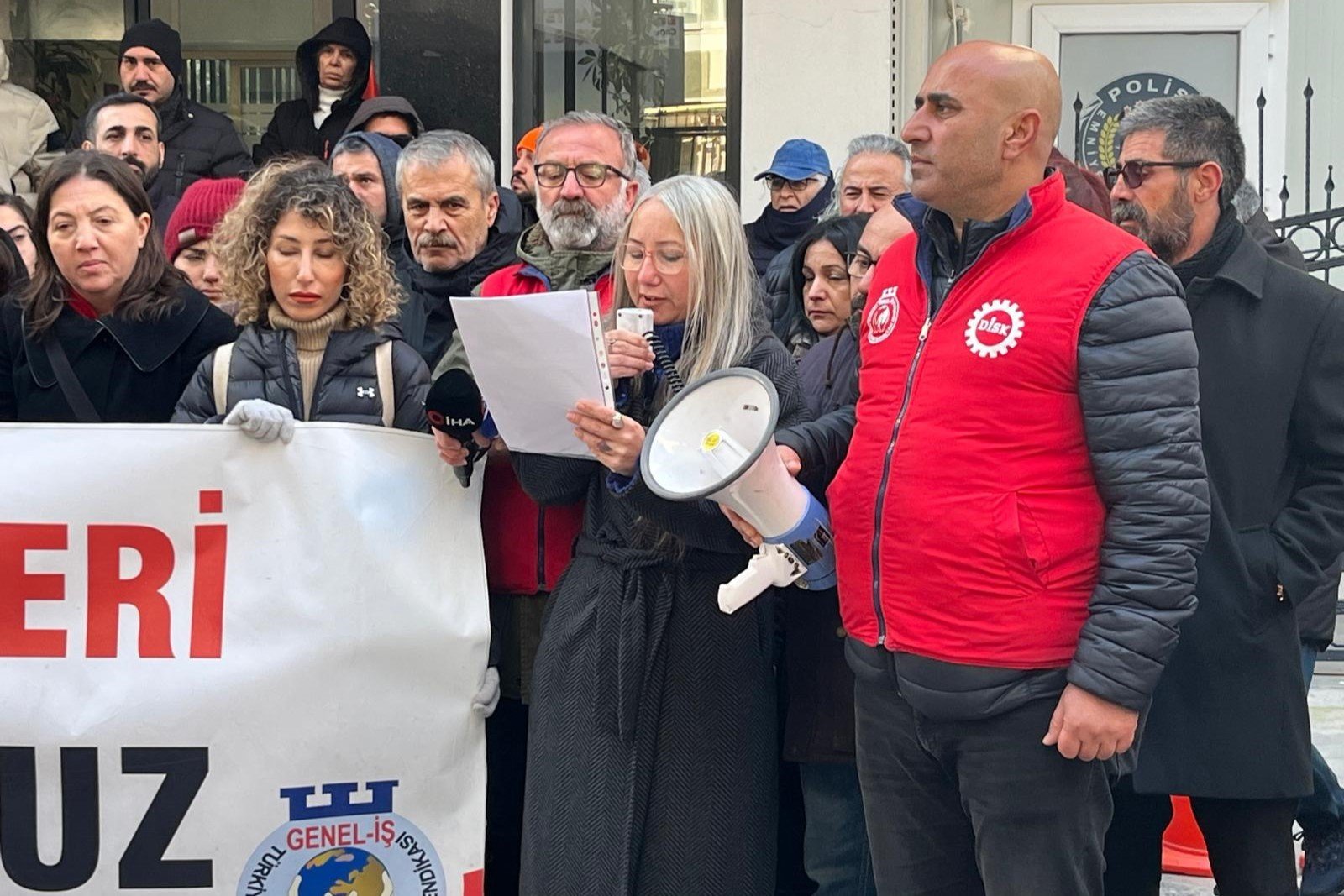 İşçiler adına söz alan Elçin Cinğ, "Karşıyaka Belediyesi Kent A.Ş bünyesinde yıllardır emek veren, alın teriyle geçimini sağlayan çalışanlardık. Hiçbir haklı gerekçe olmaksızın haksız ve hukuksuz bir şekilde İş Kanunu 25/2 maddesi gerekçe gösterilerek SGK KODU 26 ve 46 ile işten çıkarıldık. İşverenimiz olan Karşıyaka Belediyesi bize güveni kötüye kullanma, hırsızlık yapma veya meslek sırlarını açıklama gibi suçlamalar yöneltti. Bu sebeple işten çıkarılmamızın ağır sonuçları oldu. Kıdem ve ihbar tazminatımızı alamadık, işsizlik maaşına başvurma hakkımızdan olduk ve SGK kayıtlarımıza ‘ahlak ve iyi niyet kurallarına aykırı davranış’ nedeniyle işten çıkarıldığımız işlendi. Bu durum, yeni bir iş bulmamızı da zorlaştırıyor. Bu karar keyfi ve haksız bir şekilde alınmıştır" diye belirtti.
