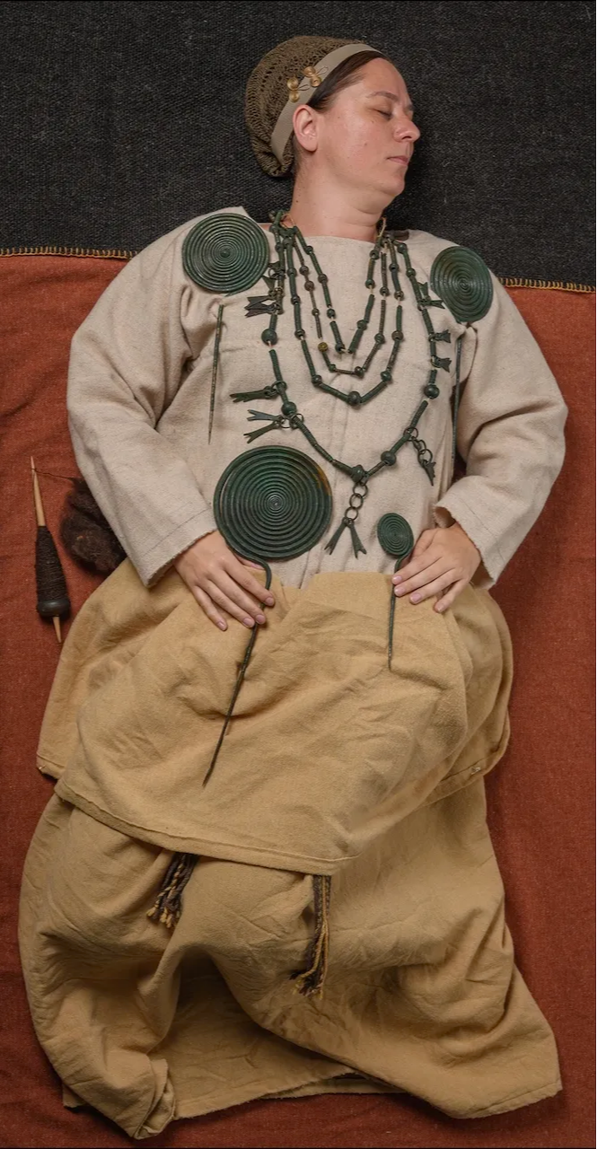 Araştırmacılar çalışmalarını, bir Chelmno kadınının gömülmesinin neye benzeyebileceğini hayal eden illüstrasyonlarla tamamladılar. Bu resimlerden birinde, kadın başı yana dönük bir şekilde uzanmış ve bölgede bulunan metal takılardan bazılarıyla süslenmiş olarak görülüyor.